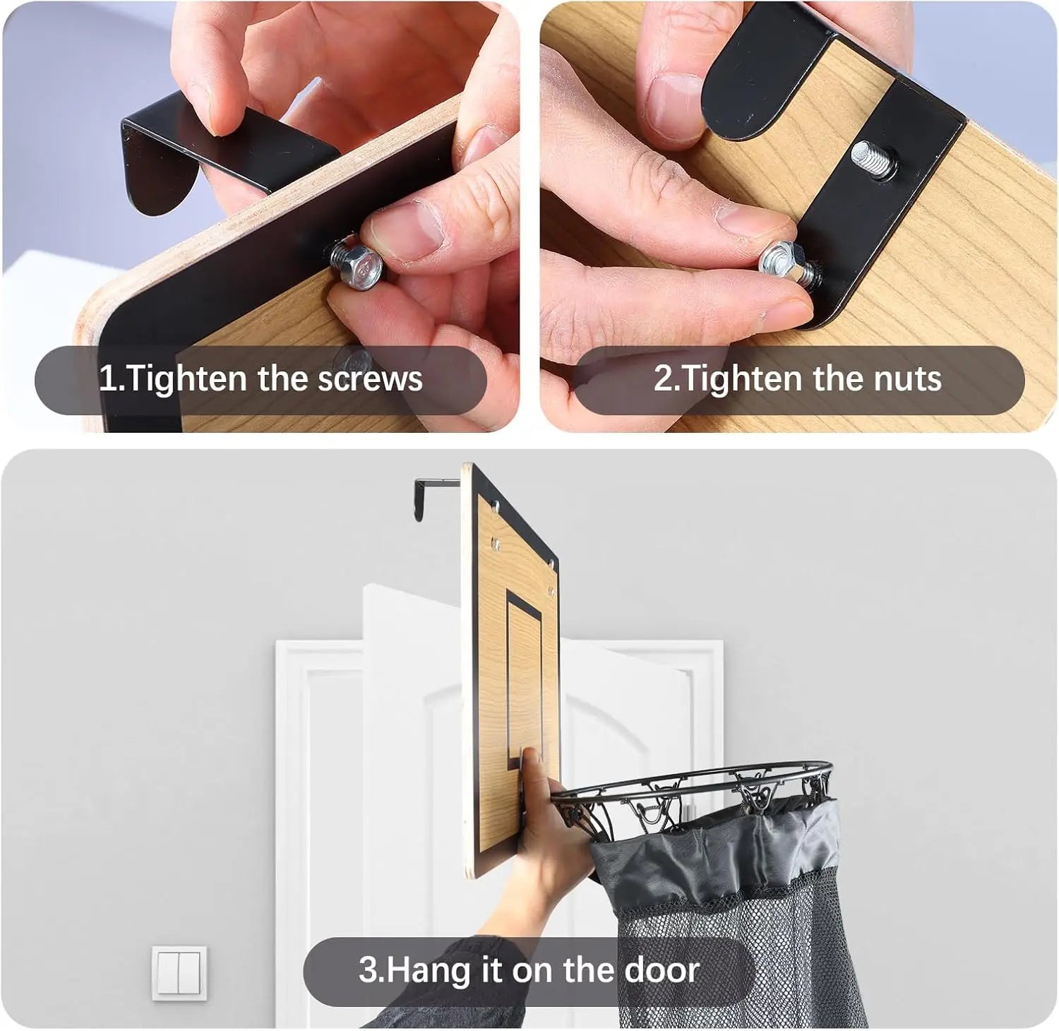 No complicated installation steps or advanced tools needed—this boys laundry basket features a backboard and hoop measuring 12 inches x 17 inches, easily mounting to any type of bedroom door.