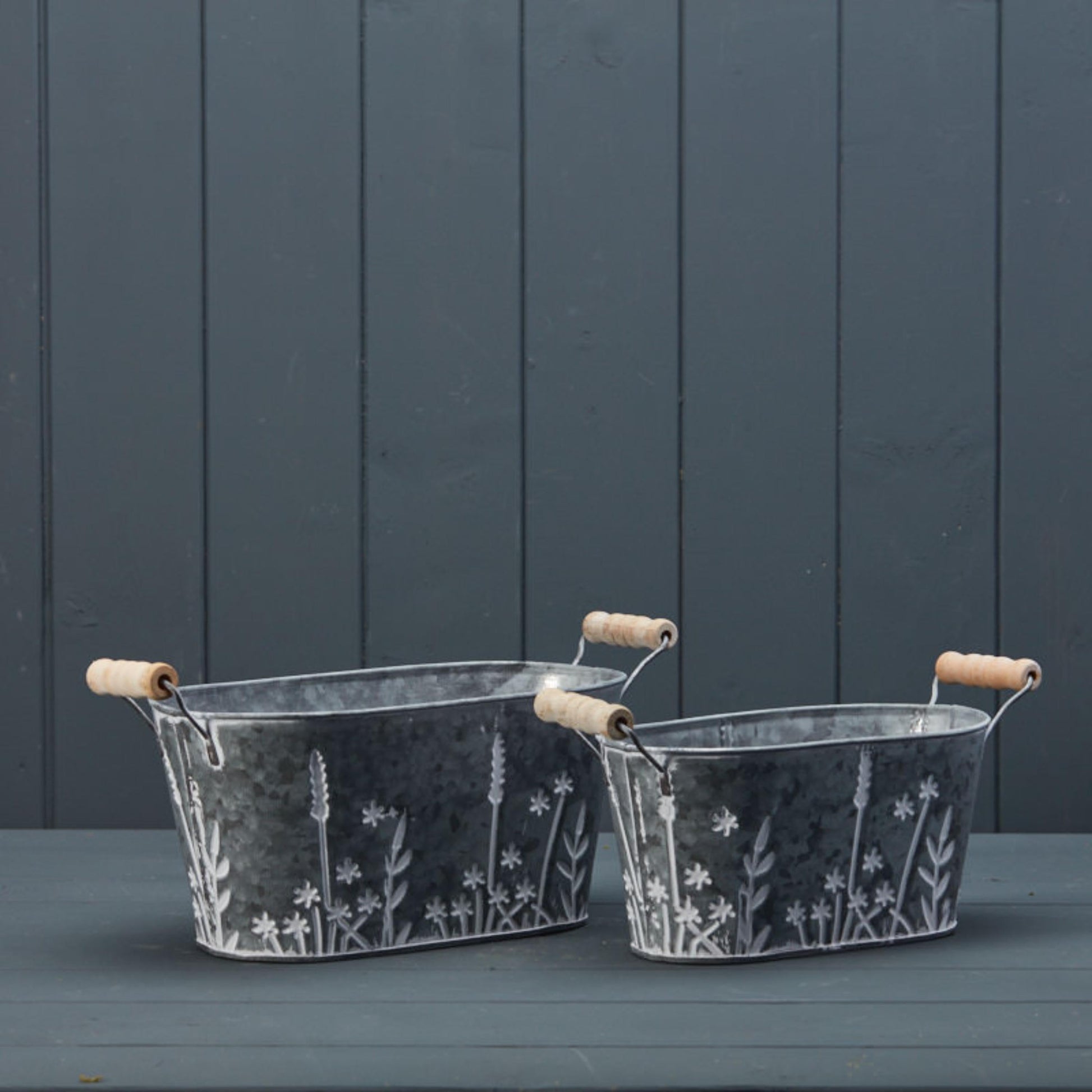 Add a touch of pastoral charm to your home or garden with our Meadow Design Oval Planters Set of 2. These planters feature a beautifully crafted meadow-inspired design that brings the serenity of nature into your living space. With their elegant oval shape and delicate floral motifs, these planters are both functional and decorative, making them the perfect addition to any setting. Individual Measurements are: Large H12 x W13 x L24cm, Small H10 x W11 x L20cm.